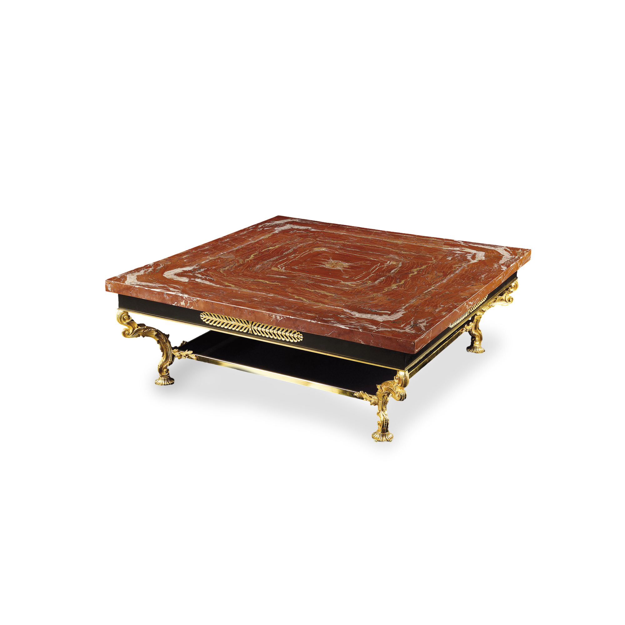 Caesar Square Coffee Table 120X120 With Red Jasper Top And 24K Gold-Plated Bronze